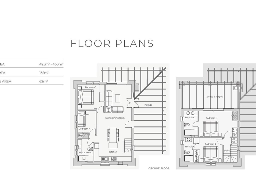 La villa cuenta con amplias terrazas y pérgolas, mientras que el interior ofrece un hogar contemporáneo con estilo y atractivo moderno.