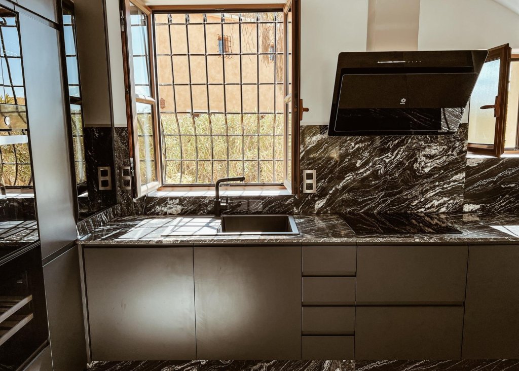 La villa cuenta con amplias terrazas y pérgolas, mientras que el interior ofrece un hogar contemporáneo con estilo y atractivo moderno.