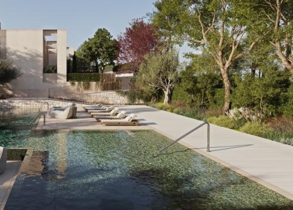 Residencial de obra nueva de 17 adosados con zona común ajardinada y piscina cerca de Valencia en Godella.
