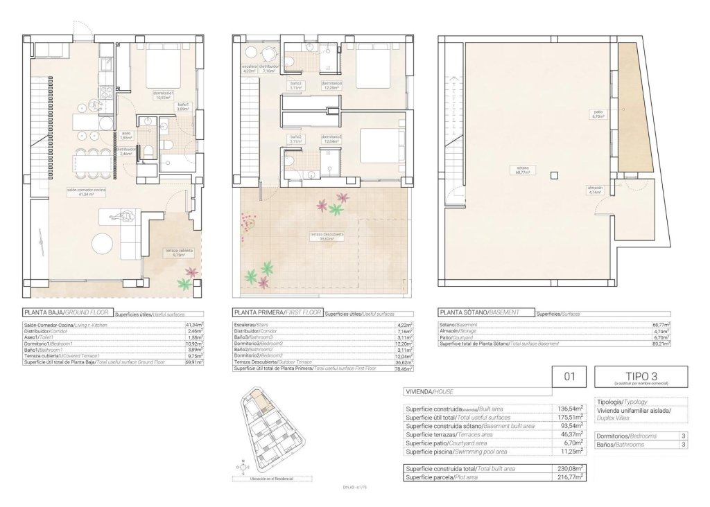 NEW BUILD VILLAS IN HONDON DE LAS NIEVES Modern New Build villas in Hondon de las Nieves. Villas composed over two floors and basement with English courtyard, has 3 bedrooms, 3 bathrooms, guest toilet, open plan kitchen with the lounge area, fitted wardrobes, terrace and private solarium. The spacious plots have a private garden with a swimming pool, a barbecue area, and the possibility to add a parking space. Hondón de las Nieves is a town in the Valencian Community, Spain. It is located in the southwest of the province of Alicante, in the region of Vinalopó Medio. The beaches and Alicante Airport are closely just 30 minutes drive away.