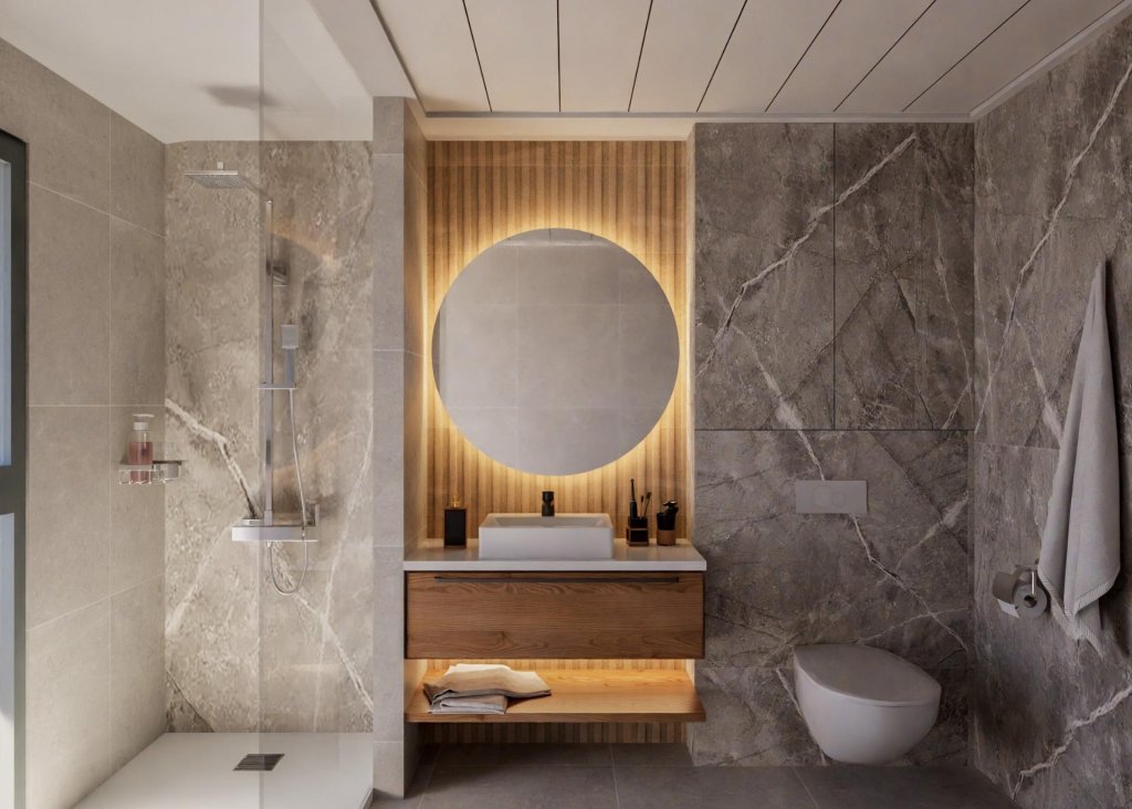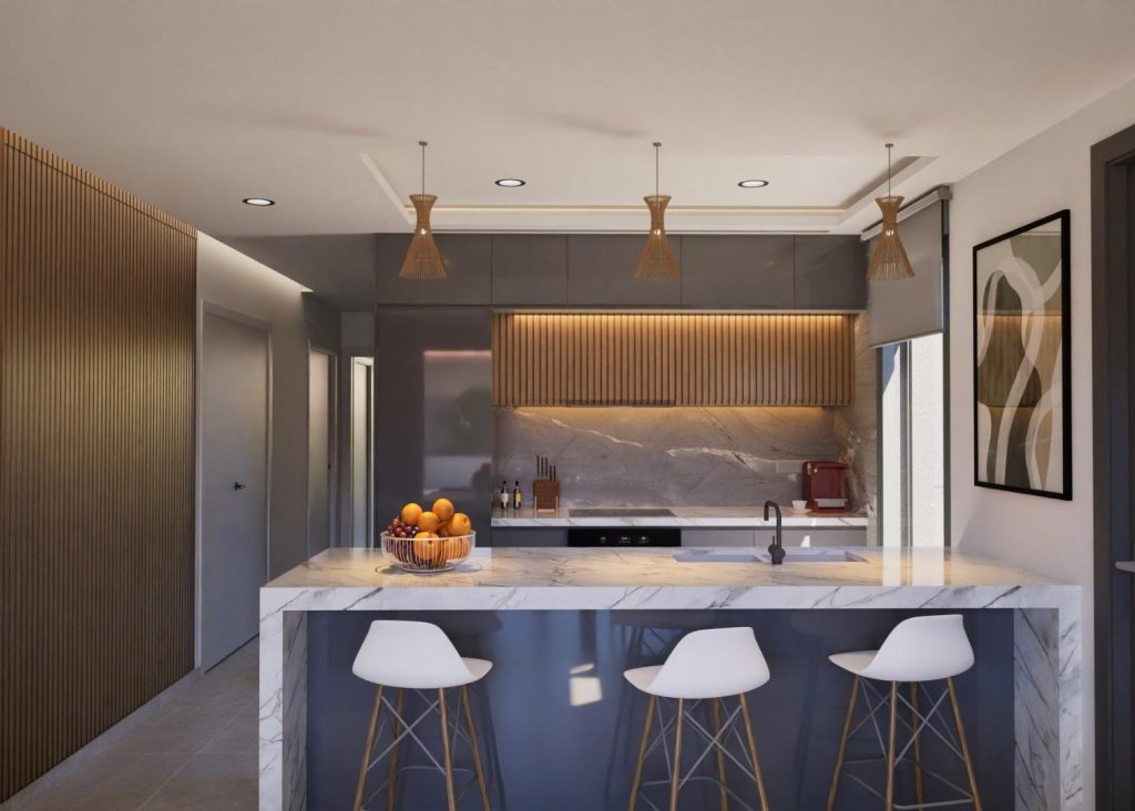 These exclusive houses are designed with elegant and functional interiors, fully equipped kitchen, appliances included. The bathrooms have a vanity unit with washbasin and light. The bedrooms include lined wardrobes with drawer units and each property has pre-installation for ducted air conditioning.