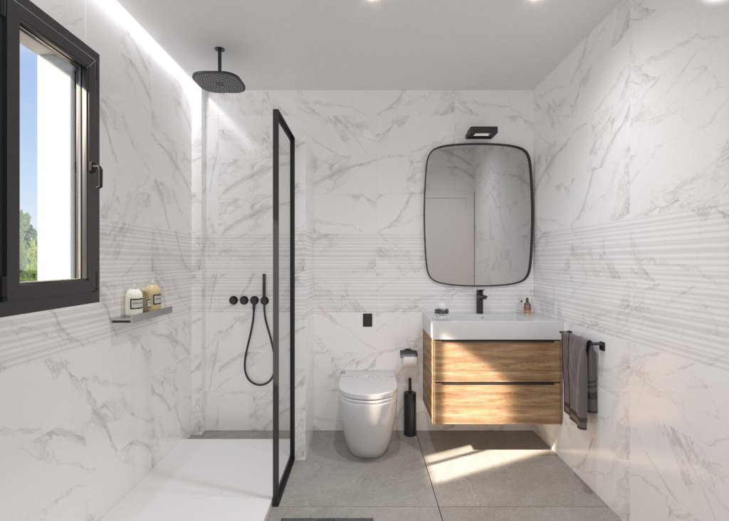 Modern villas and semi-detached villas with plots of more than 200 m2. All properties very bright with 3 large bedrooms and 3 fully equipped private bathrooms. There is also an additional guest toilet.