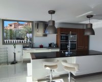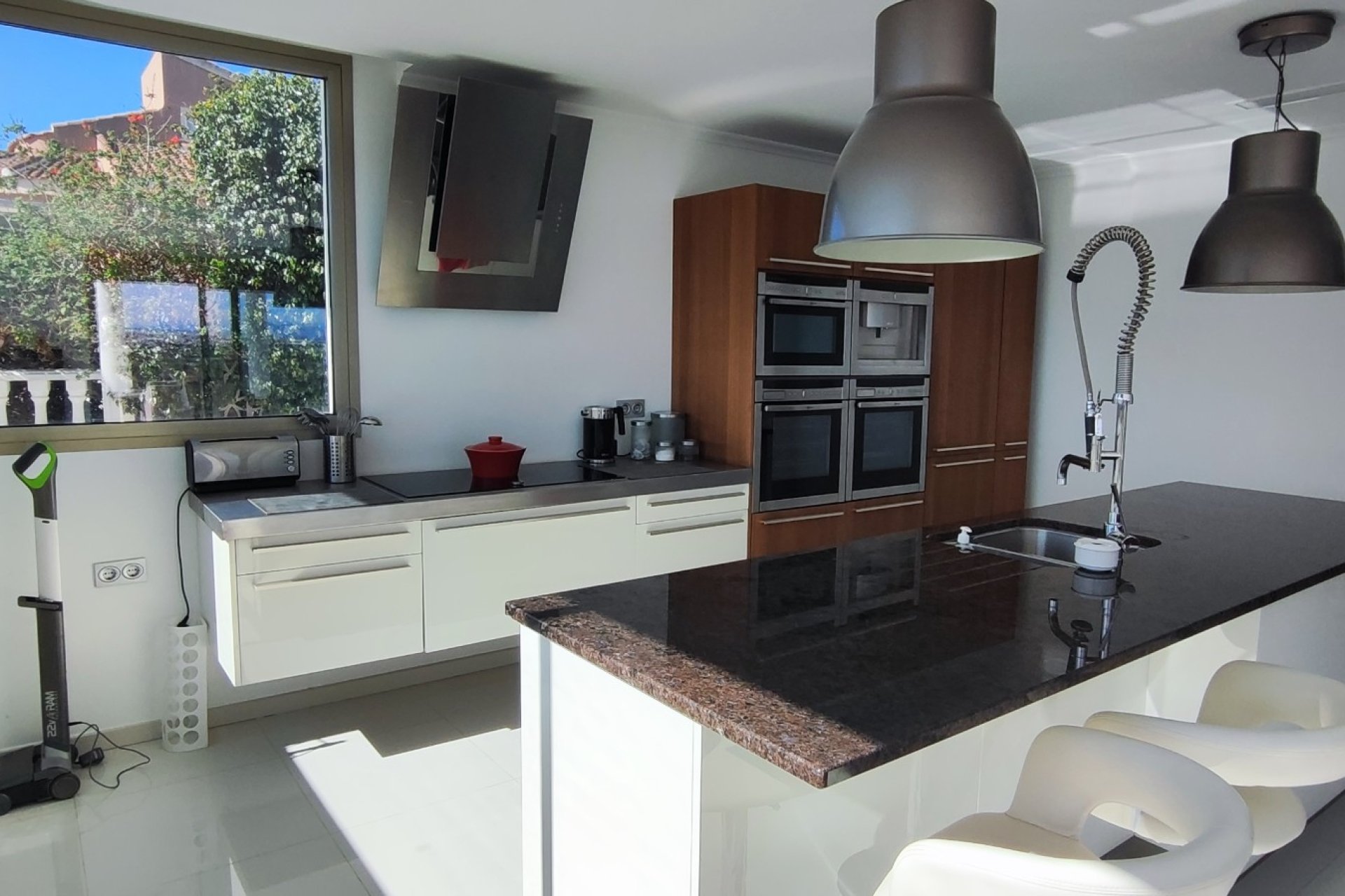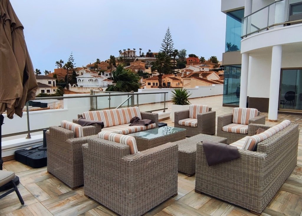 The house was originally purchased as an unfinished project 10 years ago and was completed by the current owners in 2015 and has recently been repainted both internally and externally and the pool has been re tiled so it is in excellent condition. It sits proud on an elevated 1203m2 plot on the Rojales/Quesada border with views across the countryside, golf course and surrounding residential estate. The property can be found at the end of a private access road with motorised gates opening onto a fully tiled plot. Immediately to the left is a parking area at the back of the villa which can take 3 cars, in the future this area can be covered, there is also ample space at the side of the property for more parking if needed. Walking around to the front of the villa you are just blown away by the fabulous views and openness of the plot, to the right are 2 lower terraces where you can chill out and relax or install a hot tub. The main pool area has an abundance of space around the 12 x 6 heated swimming pool and glass balustrades on the perimeter walls mean the view is never obstructed. There is a grand covered porch at the main entrance to the house where comfy sofas and chairs are placed in the shade to enjoy the Spanish weather there is also access to the ground floor kitchen which is also used as the laundry room and there is a W.C for use when you are at the pool.