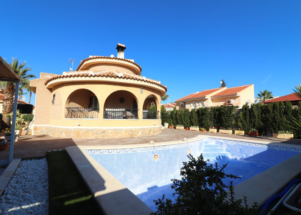 This South Facing, Three Bedroom, Detached Villa in Monte Azul, is located in a peaceful residential area with a bar and restaurant nearby. Just a five-minute drive to both Benijofar and Quesada, where you will find all main amenities, including supermarkets, shops, an array of bars and restaurants. La Marquesa Golf Course is only 10 minutes away, while the beautiful beaches of the Costa Blanca can be reached in just 15 minutes. Situated on a generous 400m2 plot, this 120m2 villa is set across one level, offering a spacious curved and arched entrance terrace, perfect for relaxing or dining outdoors overlooking the pool. The bright and airy lounge/dining room features a fireplace with a log burner and an air conditioning unit for year-round comfort. The open-plan fitted kitchen is well-equipped and conveniently connected to the living space. The villa boasts three double bedrooms, all with built-in wardrobes, plus a family shower room and an en-suite bathroom to the master bedroom. Externally, the garden is designed for low maintenance, mainly tiled with a pebbled area, planted borders, shrubs, and mature palm trees. There is an 8 x 4 private pool, ideal for cooling off in the warm Spanish sun, as well as off-road parking with a carport. A fantastic family home in a great location, offering comfort, convenience, and outdoor living on the Costa Blanca South!